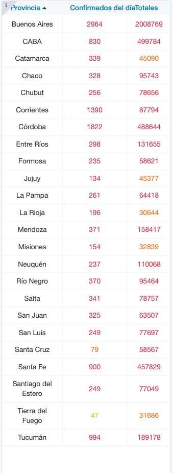 De los 13.369 nuevos contagios reportados hoy, 2.964 son de la provincia de Buenos Aires, 830 de la ciudad de Buenos Aires, 339 de Catamarca, 328 de Chaco, 256 de Chubut, 1.390 de Corrientes, 1.822 de Córdoba, 298 de Entre Ríos, 235 de Formosa, 134 de Jujuy, 261 de La Pampa, 196 de La Rioja, 371 de Mendoza, 154 de Misiones, 237 de Neuquén, 370 de Río Negro, 341 de Salta, 325 de San Juan, 249 de San Luis, 79 de Santa Cruz, 900 de Santa Fe, 249 de Santiago del Estero, 47 de Tierra del Fuego y 994 de Tucumán.
