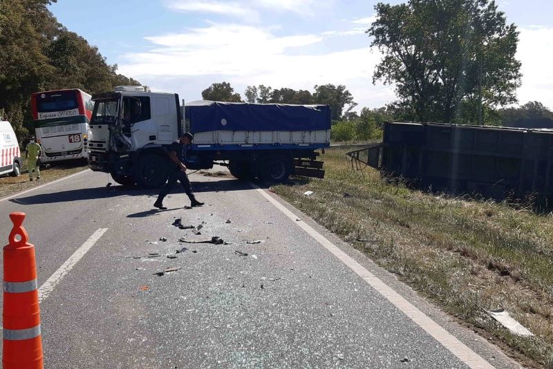 El camión pierde el control del camión, que efectúa una maniobra de “tijera” embistiendo el lateral derecho del ómnibus y volcando al acoplado que remolcaba.