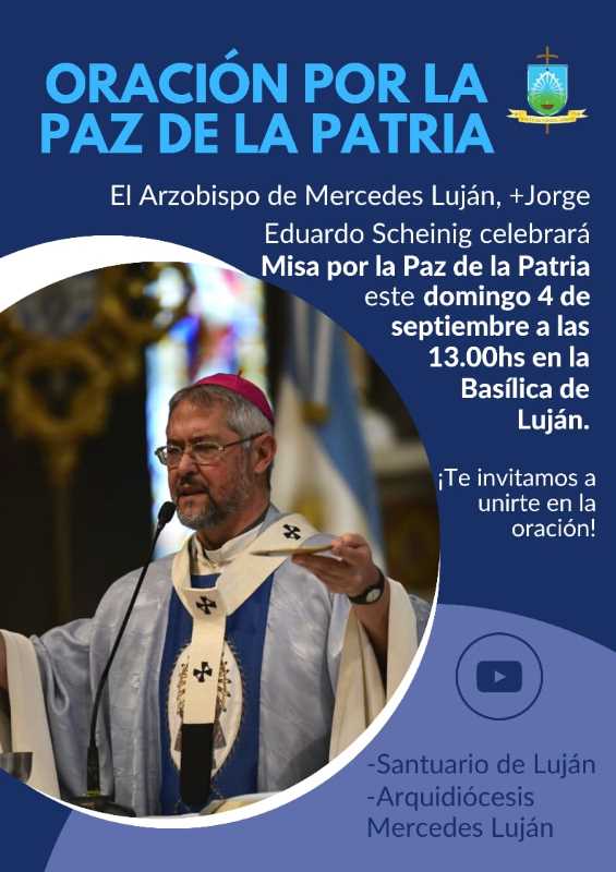 El Arzobispo de Mercedes Luján, Jorge Eduardo Scheinig celebrará Misa por la Paz de la Patria este domingo 4 de septiembre a las 13 hs desde la Basílica de Luján.