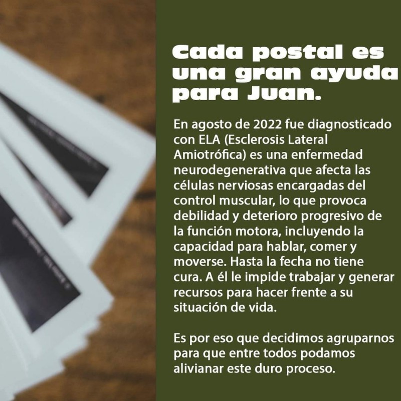 «Es por eso que decidimos agruparnos para que entre todos podamos alivianar este duro proceso. Cada posta vendida es una gran ayuda para Juan. Todos los que quieran adquirir una y colaborar con la cuasa, contactan por privado. Hay solo 10 unidades por fotografo. Se retiran en El Estudio», agrega.