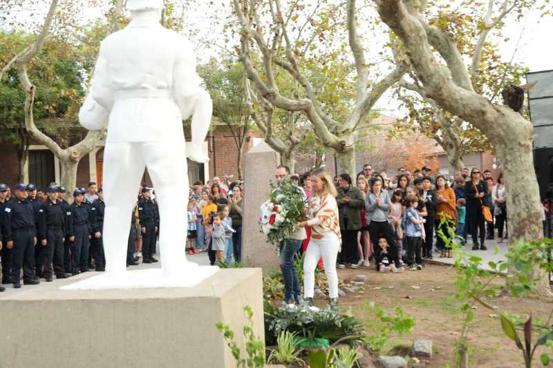Como es costumbre, el cuerpo activo desfiló desde la entrada principal hasta la plaza San Luis donde los vecinos esperaban para celebrar con ellos el acto oficial en la tarde del sábado. A los pies de la estatua se colocaron las ofrendas florales de la Asociación Cooperadora y Cuerpo Pasivo a cargo de su titular Pedro Di Cecco y el ex Jefe Ismail Gutierrez, así como del Municipio de Mercedes, el HCD Mercedes, partidos políticos y otras instituciones que los homenajearon.