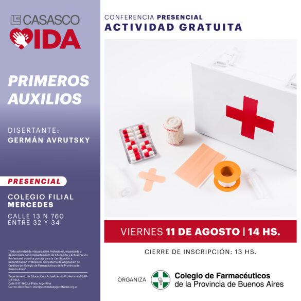 Desde el Colegio de Farmacéuticos de Mercedes anunciaron que el venidero viernes 11 de agosto realizarán una conferencia presencial y gratuita, a cargo de Germán Avrutsky. El tema central del curso son los Primeros Auxilios. La inscripción es de manera online.