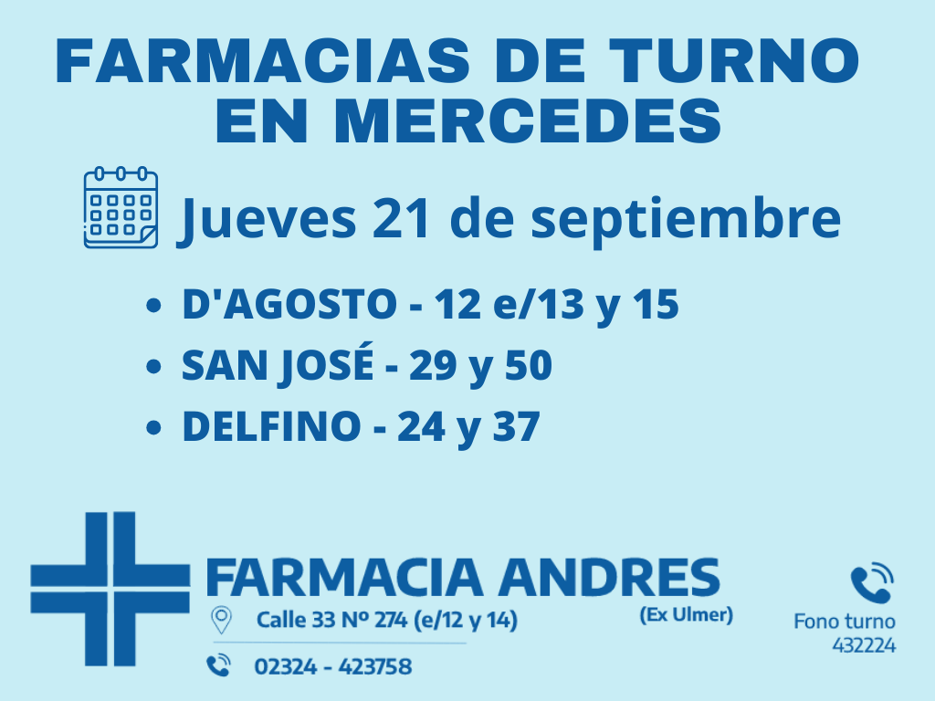 Farmacias de turno del jueves 21 de septiembre