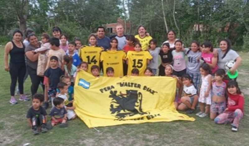 La Peña canaria “Walter Díaz” Mercedes (B) viene realizando distintos actos solidarios en la ciudad. El día jueves por la tarde, se hizo entrega de un conjunto de 16 camisetas de Flandria para la nueva escuelita de futbol femenino sub 12 denominadas «Las Toritas» del barrio Marchetti.