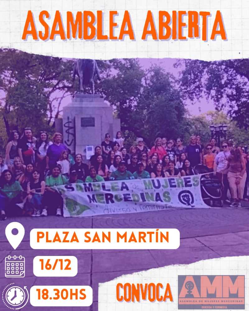 Desde la Asamblea de Mujeres de Mercedes convocan para el sábado 16 de diciembre, 18:30 horas, a una «Asamblea Pública Abierta» con «todos los sectores de la sociedad que deseen participar».
