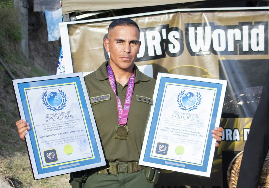 Mencionó que “vinieron a validar el récord mundial, vino el presidente de la organización de récords mundiales, desde Europa. Él estuvo presente controlando lo que era la cancha de deporte, las armas que iba a utilizar, y el sábado ya estuvo presenciando el evento, y es el que me validó el récord mundial” especificó.