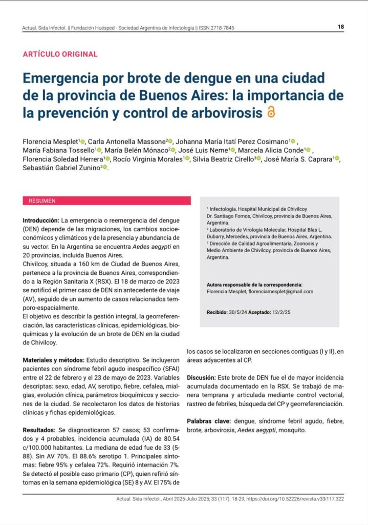 El laboratorio de Virología Molecular del Hospital Blas L. Dubarry publicó un artículo original en la revista ASEI (SADI).