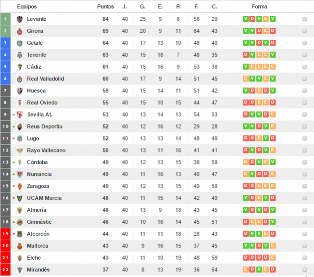 Ahora enfrentará al descendido Mirandés y en la última fecha a Getafe, que pelea por el ascenso. Deberá conseguir los seis puntos para salvarse.