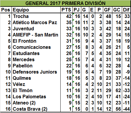 | Juventud | 1 | Lucas Pérez Zunino |