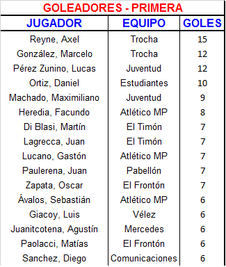 | Atl. MP | 1 | Facundo Heredia |