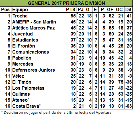 | Pabellón | 4 | Francon Monzón (2), Nahuel Romero, Juan Paulerena |