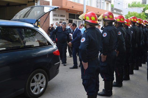 Emotiva fue la despedida de los restos del Jefe del Cuerpo Activo de Bomberos Voluntarios, Comandante Mayor Roberto Ferrari. En las últimas horas de la tarde de este miércoles 1° de noviembre, el cortejo fúnebre partió del cuartel de bomberos seguido de algunos vehículos y muchos de los presentes caminando hasta la Iglesia San Luis, mientras los comerciantes de la calle 22 y de la calle 15 salían a la vereda de sus negocios en señal de respeto.