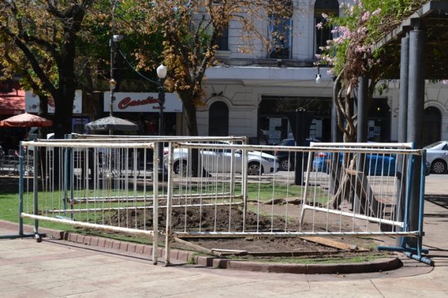 Mientras tanto, en la Plaza San Martín, desde el jueves pasado comenzó a verse el trabajo de instalación de las baldosas con la pintura del pañuelo de las Madres de Plaza de Mayo.