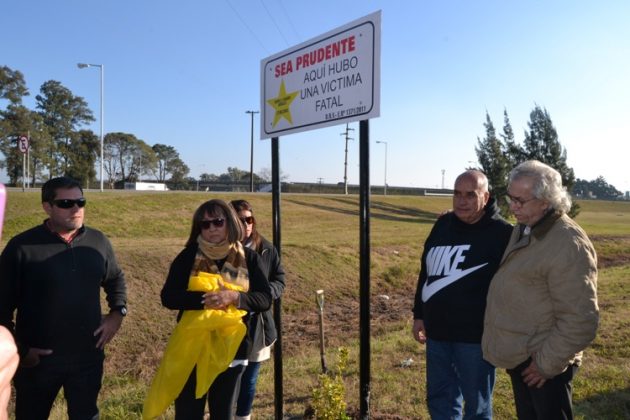 Entre la colectora y la ruta se realizó el sencillo acto organizado por el Grupo Estrellas Amarillas con la colaboración del área de Seguridad Municipal. Ángel y Alicia, los padres de Gabriel Morales, descubrieron la señalética junto a sus otros hijos. Emocionados, Ángel y Alicia agradecieron la presencia de los familiares y de los amigos que “siempre acompañaron a la familia”.