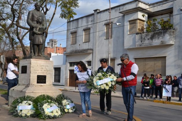 Se colocaron ofrendas florales en nombre de la Municipalidad de Mercedes, del Concejo Deliberante, de la Biblioteca Popular Domingo F. Sarmiento, de la Asociación de Educadores Jubilados y Retirados de la provincia de Buenos Aires, del Frente de Unidad Docente Bonaerense y del Colegio de Escribanos.