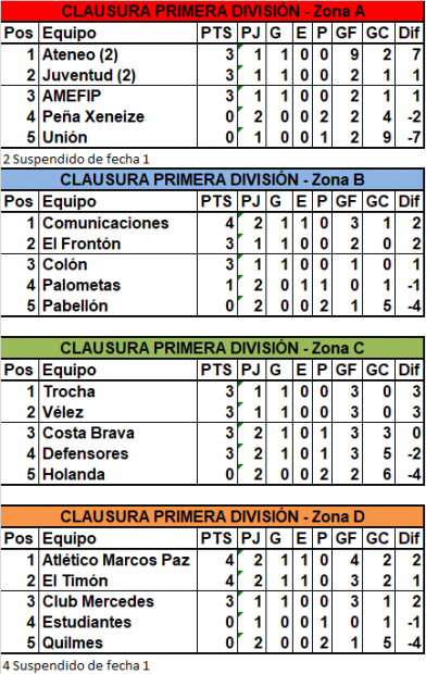 Se aprovechó la semana para que se jueguen dos partidos de los cuatro que se debían de la primera fecha del torneo Clausura. Vélez, en cancha de la Liga Mercedina, goleó a Defensores por 3 a 0, mientras que Barrio San Martín se lo dio vuelta a la Peña Xeneize con tantos de sus goleadores y ganó 2 a 1. La particularidad que tuvo este partido fue el debut del colombiano Jossimar Mosquera, quien fuera campeón de la Sudamericana 2007 y la Suruga Bank 2008 con Arsenal de Sarandí y que jugará en varios clubes, entre ellos, Godoy Cruz de Mendoza.