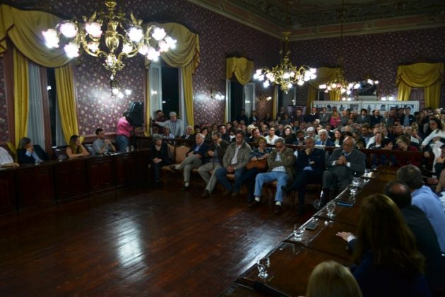 Las bancas estuvieron ocupadas por los concejales actuales y quienes fueron electos en 1983. En el recinto estaban presentes la mayoría de los 140 concejales que pasaron por el Concejo Deliberante en estos 35 años. La sesión fue presidida por el presidente actual Oscar Albini, y quien fuera titular del HCD, Eduardo Cerulli.