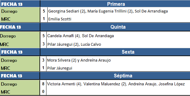 Finalmente la temporada de grupo del torneo de la Liga del Noroeste Bonaerense de Hockey llegó a su fin cuando completaron la decimotercera fecha los equipos de Dorrego y Mercedes Rugby Club en la ciudad de Navarro, que definían algunos puestos que quedaban pendientes. Fueron todas victorias locales. A partir del próximo fin de semana comienzan a disputarse los cuartos de final, que serán en Navarro debido a que cambió localía a pedido de Huracán de San Antonio de Areco, mientras que la final será en cancha de Ateneo.