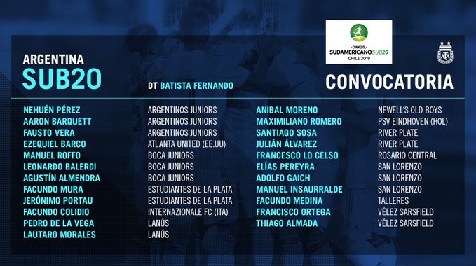 Entre los citados se destacan los nombres de algunos jugadores que, a pesar de su corta edad, ya tienen trayectoria en la Primera División del fútbol argentino o, incluso, en el exterior. Tal es el caso de Ezequiel Barco (Atlanta United de la MLS), Agustín Almendra (Boca Juniors), Julián Álvarez (River Plate), Pedro de la Vega (Lanús) y Adolfo Gaich (San Lorenzo), entre otros.