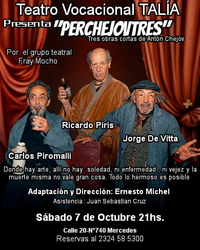 El Teatro Talía presenta la obra «Perchejovtres» que llega de la mano del grupo teatral Fray Mocho. Una producción que permite conocer a Antón Chejov … Leer.