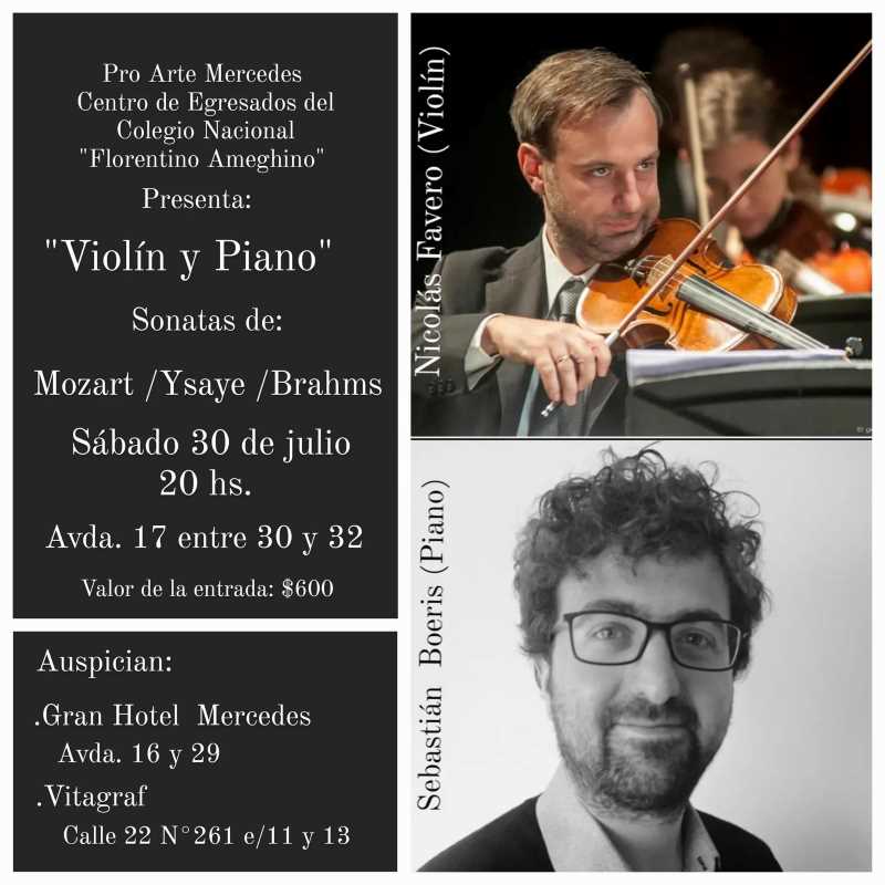 Ciclo ProArte: Violín y Piano este sábado 30 de julio. Colaboración: Susana Spano.