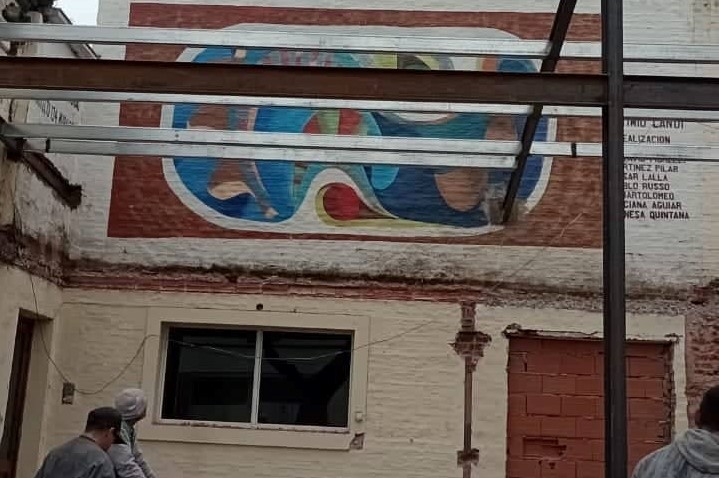El mural diseñado por Octimio «Chichí» Landi está siendo tapado ante las obras en la fachada del Museo Ameghino.