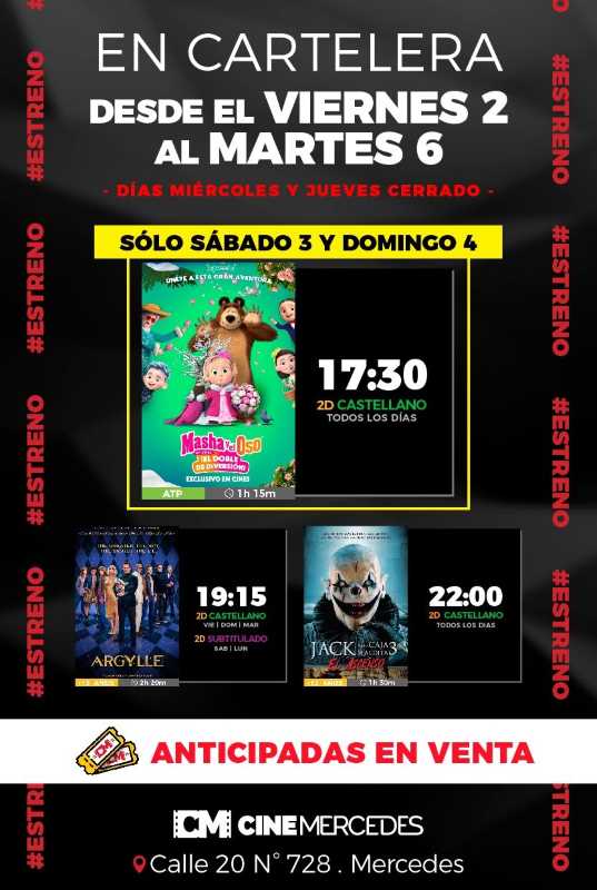 Desde el viernes 5 de enero, el Cine Mercedes presentará dos películas para la familia. En las funciones de las horas 19:30 y 17:30 (el … Leer.
