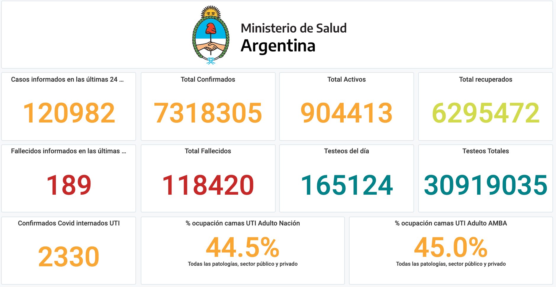 El Ministerio de Salud de la Nación informó este martes 18 de enero que, en las últimas 24 horas, se registraron 189 muertes y 120.982 … Leer.