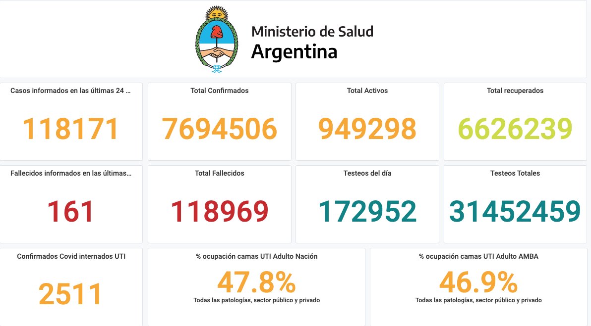 El Ministerio de Salud de la Nación informó este viernes 21 de enero que, en las últimas 24 horas, se registraron 161 muertes y 118.171 … Leer.