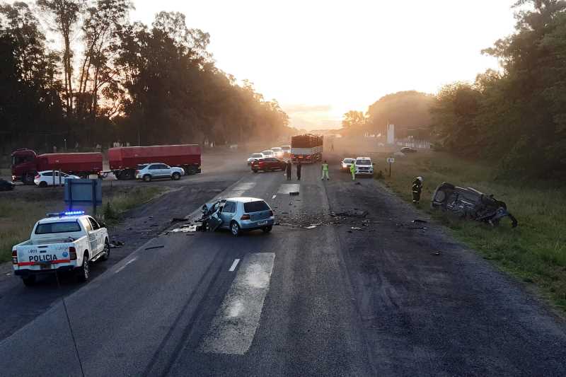 En la tarde del domingo se produjo una violenta colisión vehicular sobre el trazado de la ruta nacional 5, a pocos metros, unos minutos después se produjo un vuelco.