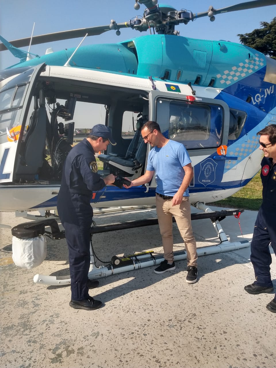 Policía de la Provincia testea helicópteros en Mercedes y la zona.