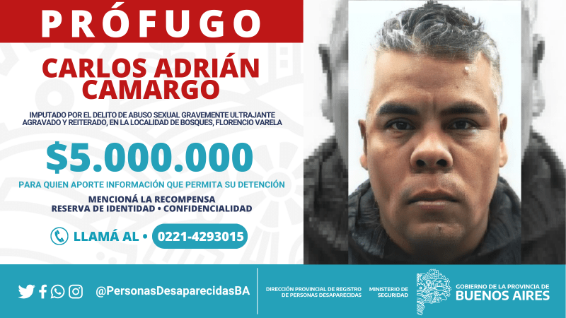 El Ministerio de Seguridad a través de la Dirección Provincial de Registro de Personas Desaparecidas ofrece pública recompensa de hasta pesos cinco millones ($5.000.000) a quien aporte datos que … Leer.