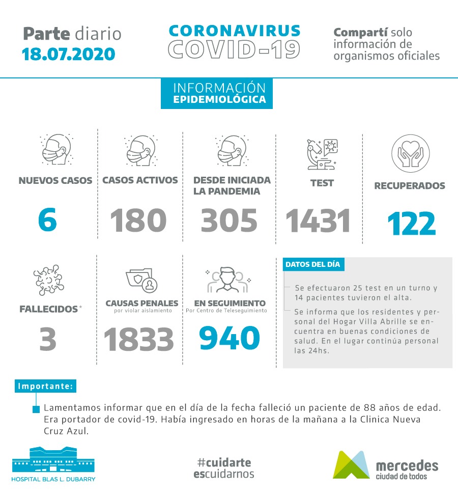 En el informe diario enviado por el Municipio de Mercedes y el Hospital Dubarry confirmaron que este miércoles se confirmaron 25 pacientes con covid-19. Asimismo, … Leer.