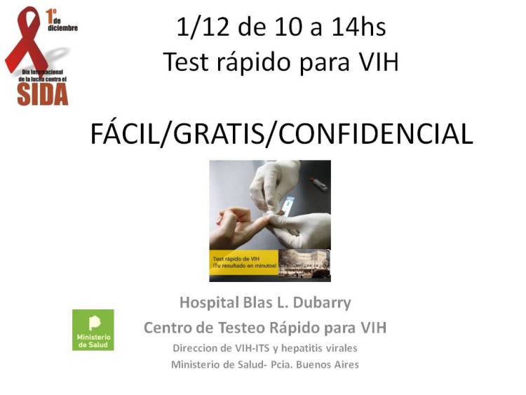 El Dubarry hará testeos rápido de HIV el 1° de diciembre