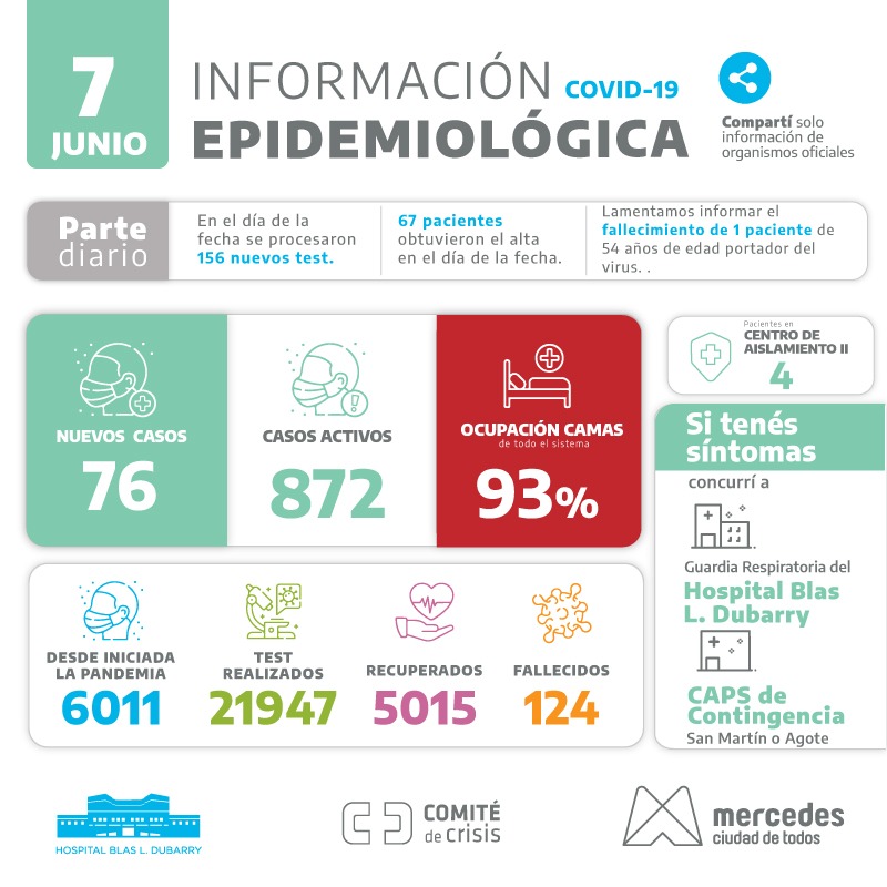 Con un nuevo incremento de ocupación de camas en el sistema de salud, que arriba al 75%, sigue fuerte la segunda ola en Mercedes. En … Leer.
