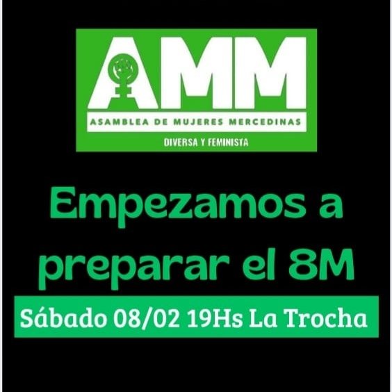 Desde la Asamblea de Mujeres Mercedinas Diversa y Feminista (AMMDYF) invitan a la comunidad a organizar la previa del 8M – Día Internacional de la … Leer.