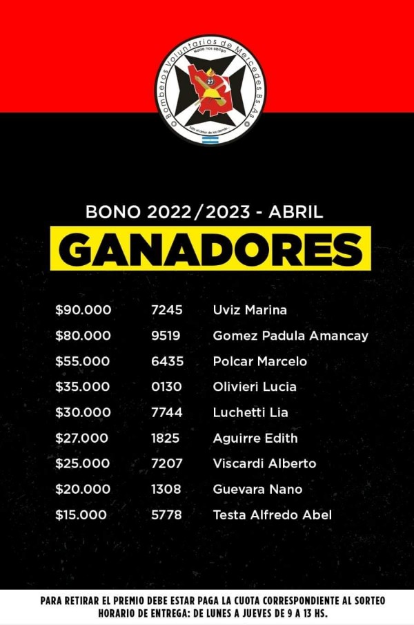 Desde el Cuerpo de Bomberos Voluntarios de Mercedes anunciaron los ganadores del sorteo del mes de abril del bono contribución del año. «Ante todo queremos … Leer.