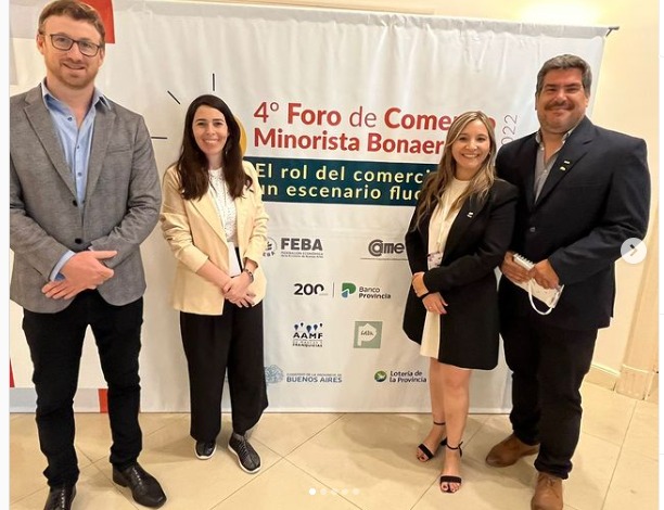 La presidenta de la Cámara Económica Mercedina Paula Arretche, junto al tesorero Pablo Perazzo, a la responsable de la Subcomisión de Mujeres, Natalia Facciolo y al Gerente de la CEM, Ariel Pietrucha, participaron del 4° Foro de Comercio Minorista Bonaerense.