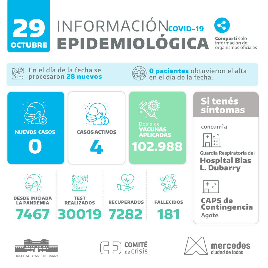 Otra jornada con cierre sin casos positivos se vivió en Mercedes. Tampoco se produjeron altas. Los test resultaron 33 para este lunes 1 de noviembre. … Leer.