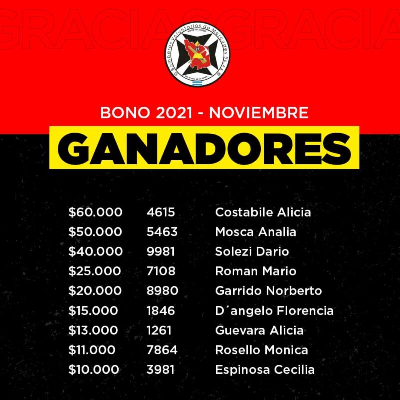 Bomberos dio a conocer los ganadores de noviembre