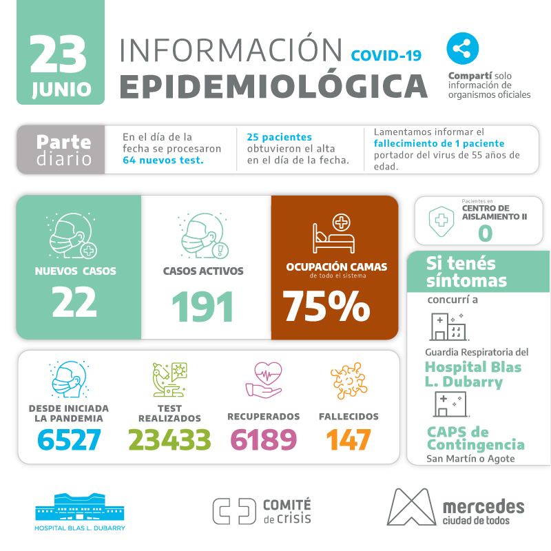 En el día de la fecha lamentamos el fallecimiento de 1 paciente portador del virus. A su vez se logró la detección de 22 nuevos … Leer.