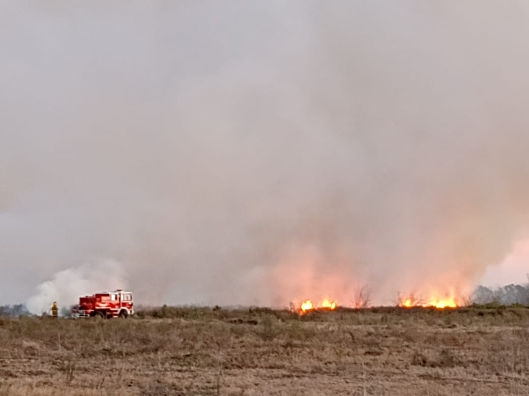 Bomberos Voluntarios debieron acudir en auxilio de un campo al costado de la ruta nacional nº5 altura del peaje de Olivera que se estaba incendiando. … Leer.