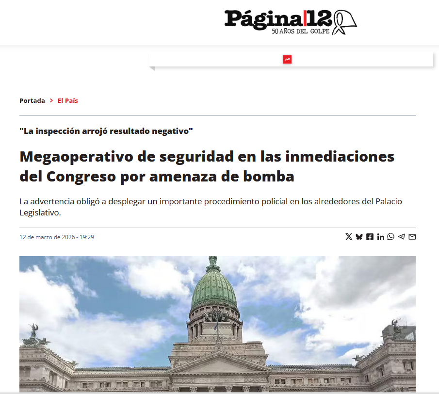 Megaoperativo en el Congreso tras una alerta de bomba que paralizó la actividad legislativa.