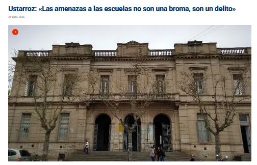Ustarroz: «Las amenazas a las escuelas no son una broma, son un delito grave».