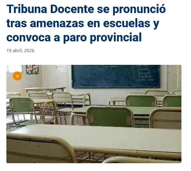 Tribuna Docente se pronunció y convocó a un paro provincial en reclamo de seguridad.