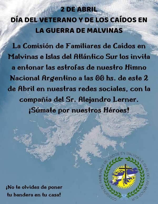 Los Familiares de los Héroes Caídos en Malvinas invitan a todo el país a entonar las Estrofas del Himno Nacional Argentino junto a la 0 … Leer.