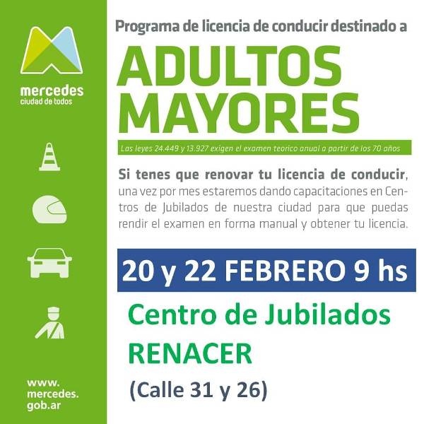 En esta semana la Municipalidad de Mercedes llevará adelante capacitaciones destinadas a adultos mayores para que puedan rendir el examen y renovar su licencia de … Leer.