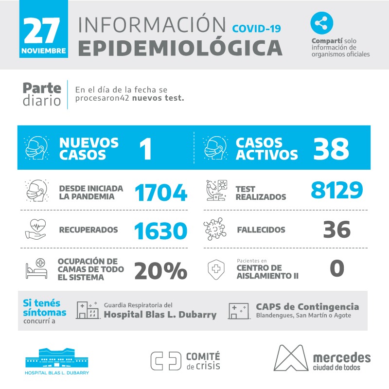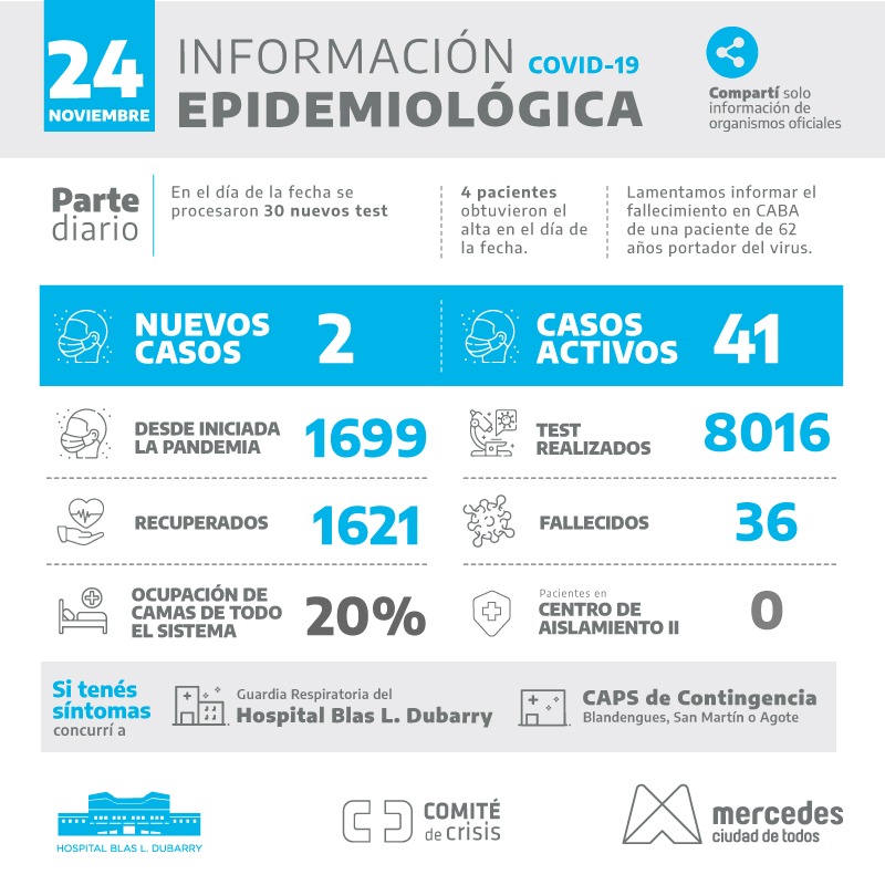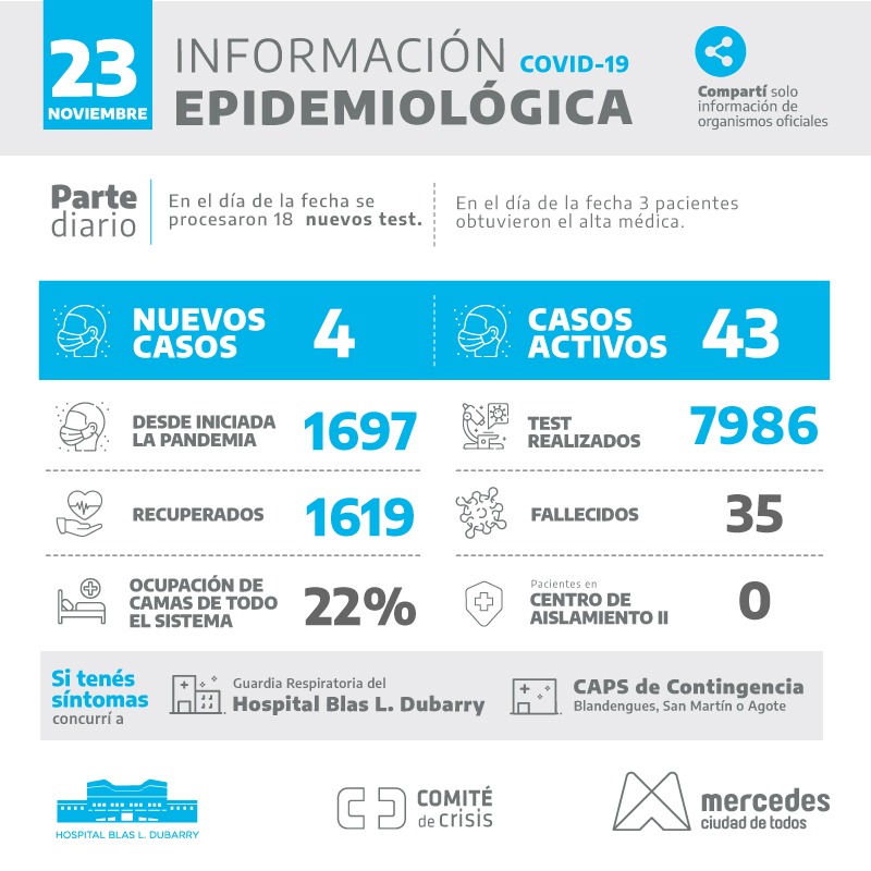 La información epidemiológica de Mercedes da cuenta de 31 casos positivos nuevos confirmados entre los 139 análisis realizados por el Laboratorio de Virología. Asimismo, informan … Leer.