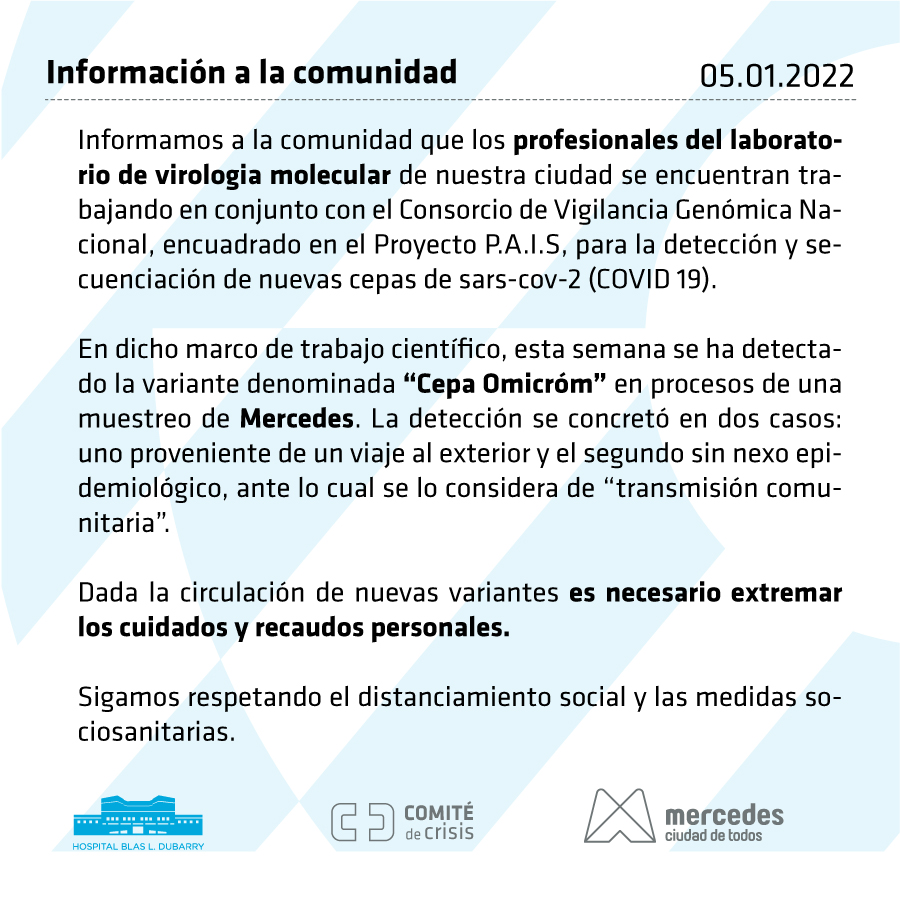 Tercera Ola: detectan «Cepa Omicróm» en Mercedes