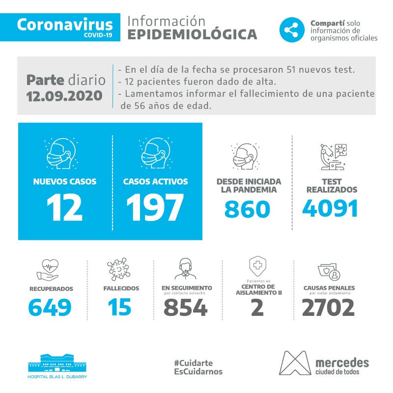 Este sábado en Mercedes confimaron el fallecimiento de una mujer de 56 años de edad con covid-19. Asimismo, se anunciaron que 12 personas recibieron el … Leer.